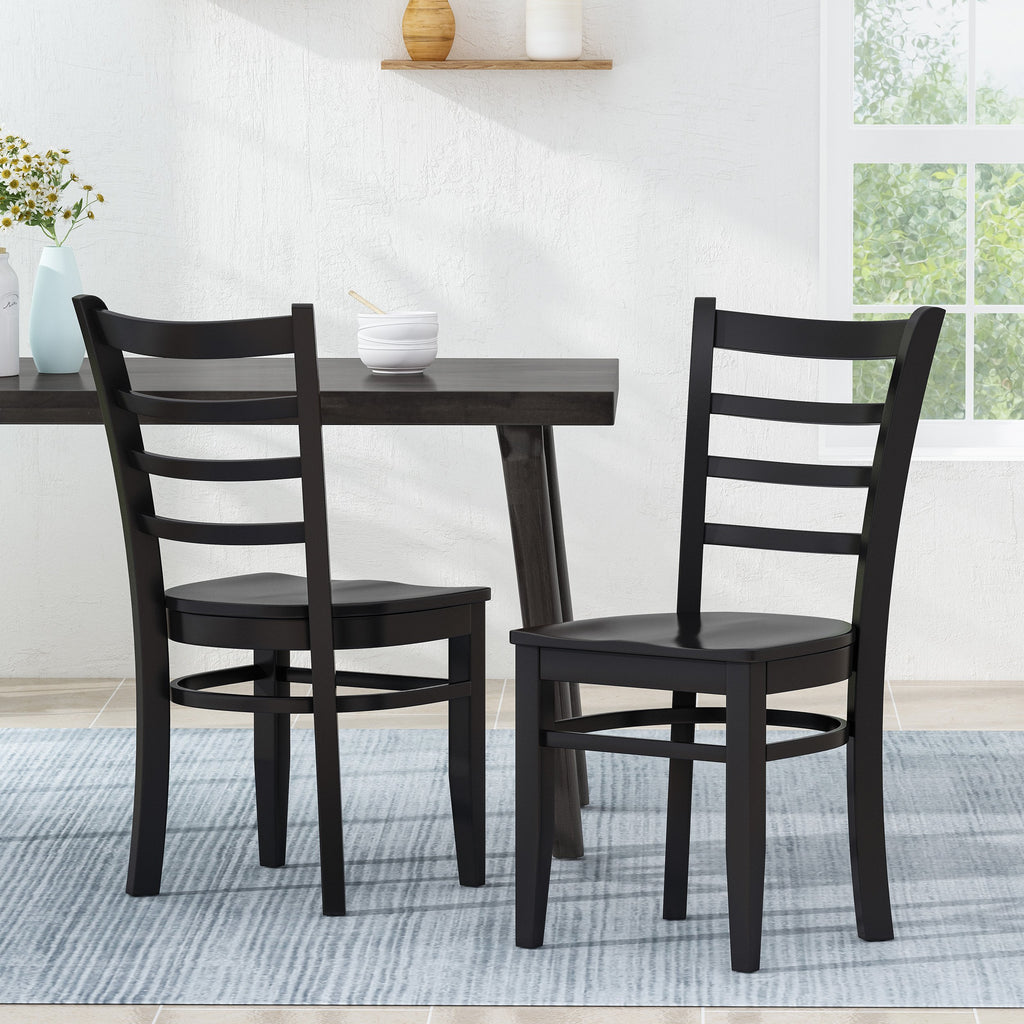 Create a cozy cottage atmosphere in your dining area that will elevate every hearty meal with a warm ambiance and wonderful style. Featuring a charming farmhouse style, our chair set combines durable rubberwood frames with a stunning traditional ladder back design that will frame your dining table with a dash of rustic charisma. Finished with slender tapered legs, this beautiful set of dining chairs offers sturdy structures and impeccable design to instantly transform your dining space into an absolute masterpiece.