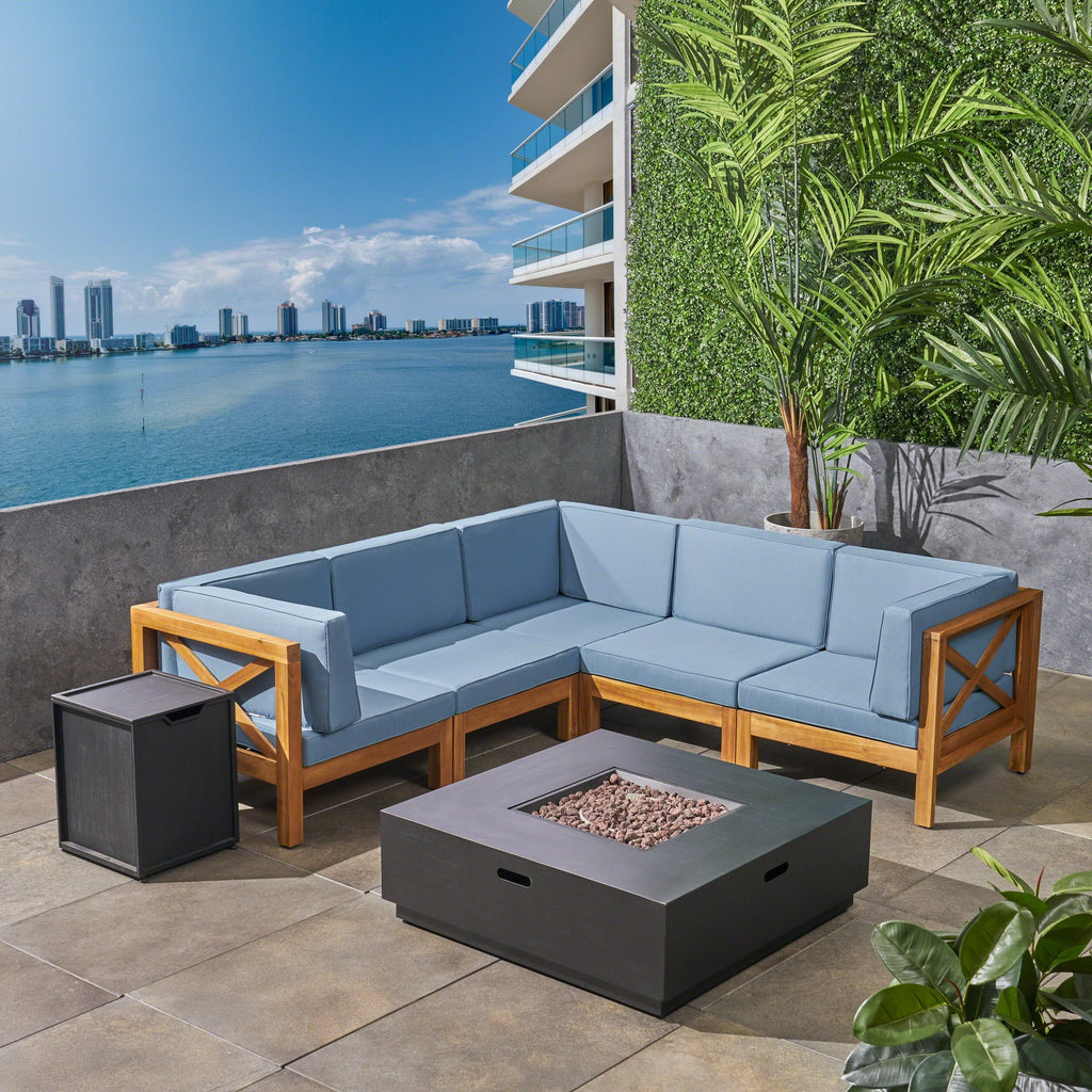Outdoor Acacia Wood 5 Seater Sectional Sofa Set with Fire Pit - NH727603
