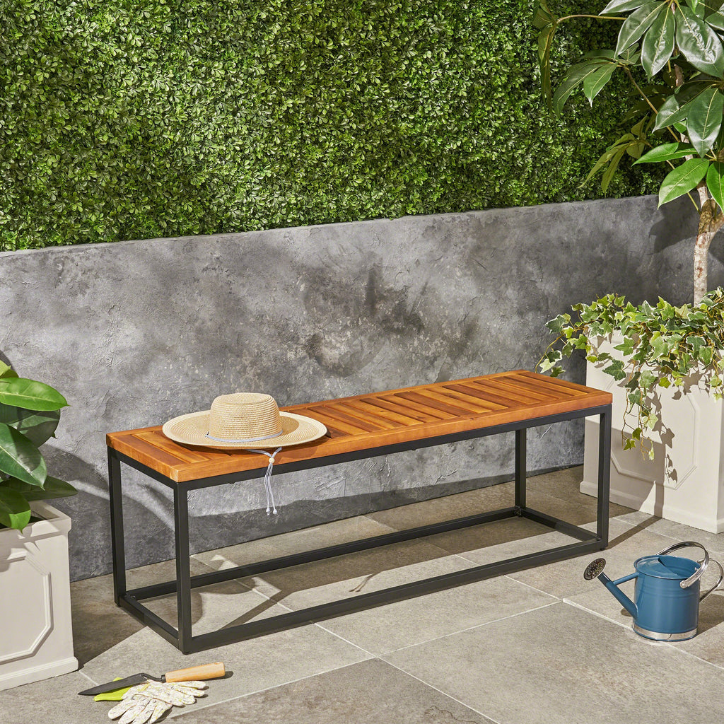 Outdoor Industrial Acacia Wood and Iron Bench - NH924603